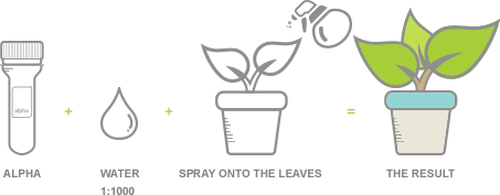 Dilute Novelgro Alpha in water with 1:1000 ratio (1ml of Alpha into 1 litre water)
